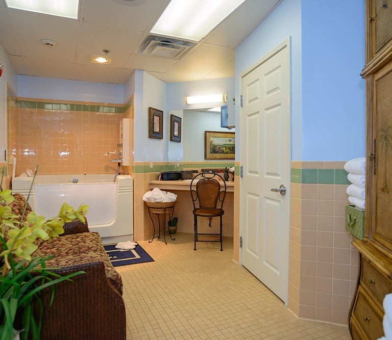 Three home-cooked meals are served daily in a restaurant-style dining room, with menus tailored to individual dietary needs and preferences.