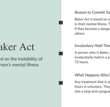 When someone is experiencing a mental health crisis and poses a risk to themselves or others, Florida law provides a protective measure called the Baker Act. This legal action allows for the temporary, involuntary assessment and stabilization of individuals with mental health issues, ensuring they receive the care and evaluation they need.